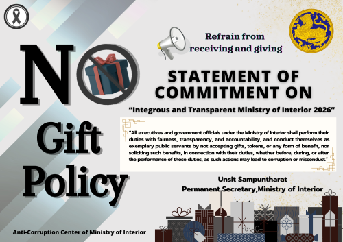 ประกาศเจตนารมณ์นโยบาย No Gift Policy กระทรวงมหาดไทย